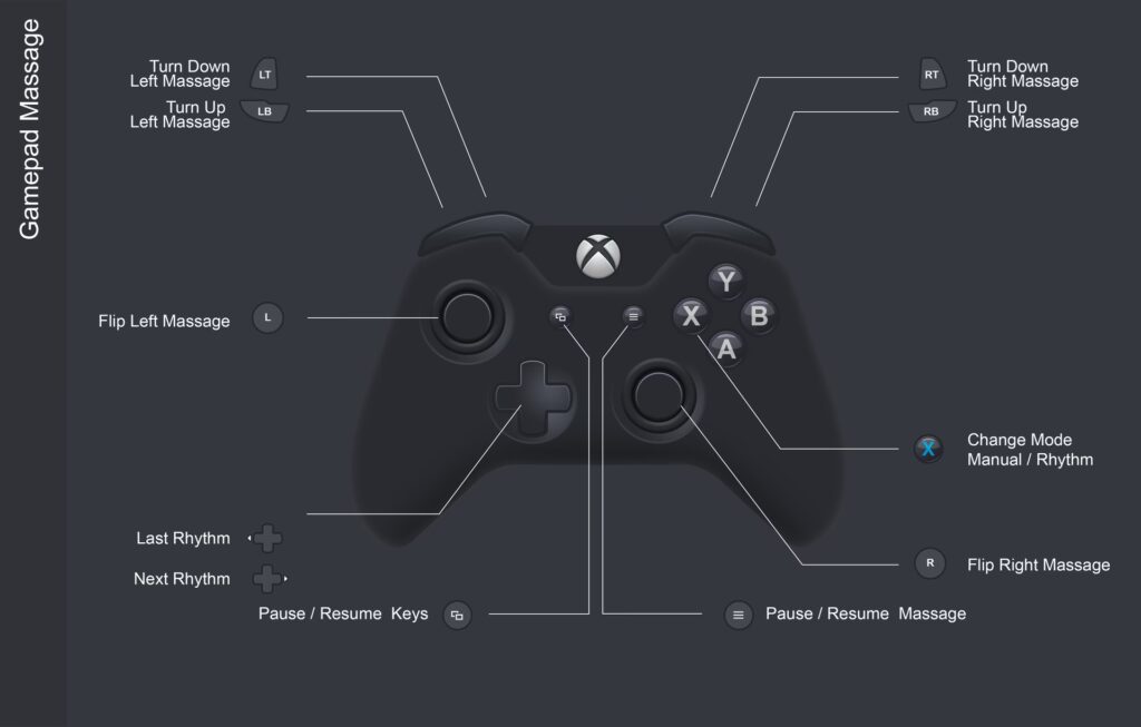 - iMASSAGE UE v2.0 prend en charge le "hot swap" des contrôleurs. Vous n'avez pas besoin de redémarrer l'application si une manette se déconnecte ou si vous en changez ; l'application gérera la reconnexion automatiquement, assurant une interruption minimale de votre session de massage.