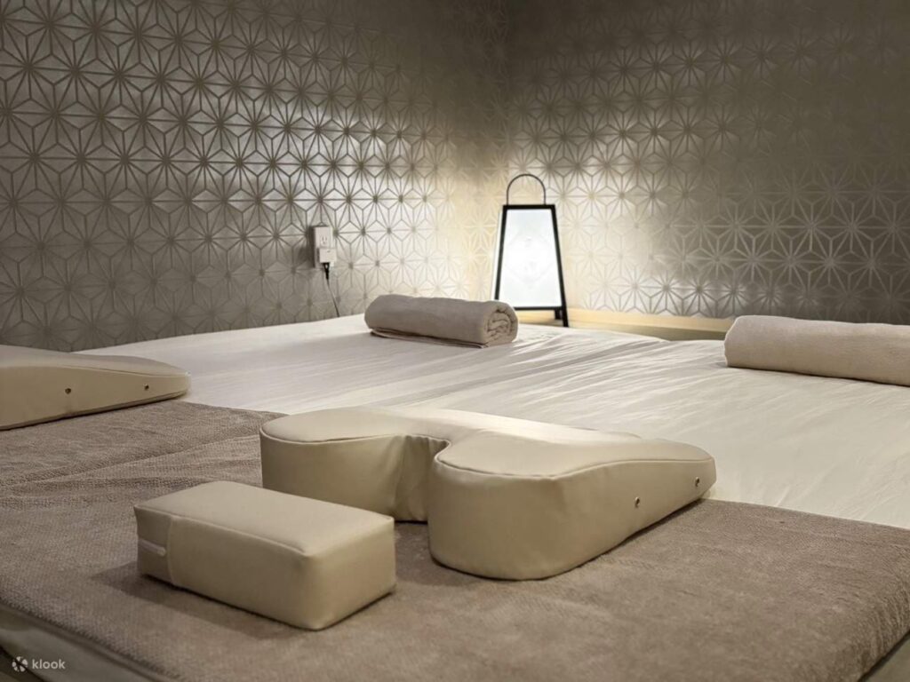 Imaginez-vous dans un bâtiment traditionnel de Kyoto vieux de 100 ans, une 'machiya' typique, où l'ambiance sereine et l'éclairage naturel créent un environnement apaisant. Les salles de traitement, spacieuses et privées, sont conçues pour votre confort et votre quiétude. C'est le cadre idéal pour se remettre du décalage horaire, de la fatigue du voyage ou simplement pour rechercher une profonde relaxation et une véritable reconnexion à soi.