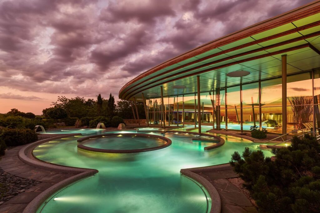 Frémissantes cascades, banquettes de massage immergées ; bassin à débordement avec musique subaquatique ; bassin animé de lacets d'eau à contre-courant, de rivières avec jets massants ; Sauna, Hammam, douche à neige... En symbiose avec la nature, l'espace Balnéo de 3600m² du Resort Barrière Ribeauvillé est un paradis de bien-être.