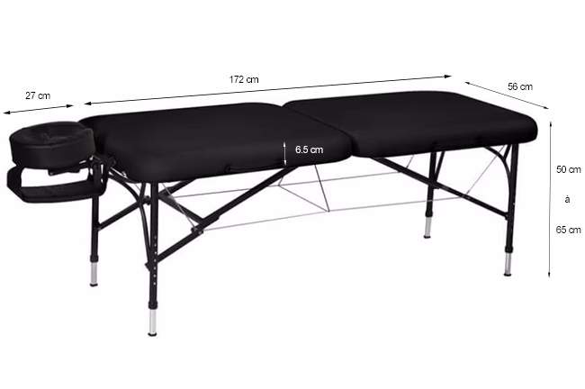 La longueur de votre table doit permettre à toute personne, quelle que soit sa taille, de s'allonger confortablement sans que ses pieds ne dépassent. La plupart des tables mesurent entre 1m80 et 1m95. La bonne nouvelle est que la plupart sont équipées d'une têtière amovible, ce qui ajoute une vingtaine de centimètres et permet d'accueillir les personnes de grande taille. Inutile donc de chercher des tables hors de ces standards. Concernant la largeur, les dimensions oscillent généralement entre 70 et 76 cm. Bien qu'une table plus large puisse sembler plus confortable pour le client, il est essentiel de penser à votre propre ergonomie. Une table trop large peut rendre certaines manœuvres difficiles, vous obligeant à vous pencher excessivement et à adopter des postures contraignantes, ce qui à terme peut entraîner des douleurs dorsales ou musculaires. Une largeur de 70 cm est souvent suffisante et offre un excellent compromis entre le confort du client et la facilité de travail pour le praticien. Les tables de massage sont souvent livrées avec des extensions amovibles pour les bras, qui peuvent augmenter la largeur au niveau du haut du corps, offrant ainsi un espace supplémentaire si nécessaire sans compromettre votre mobilité.